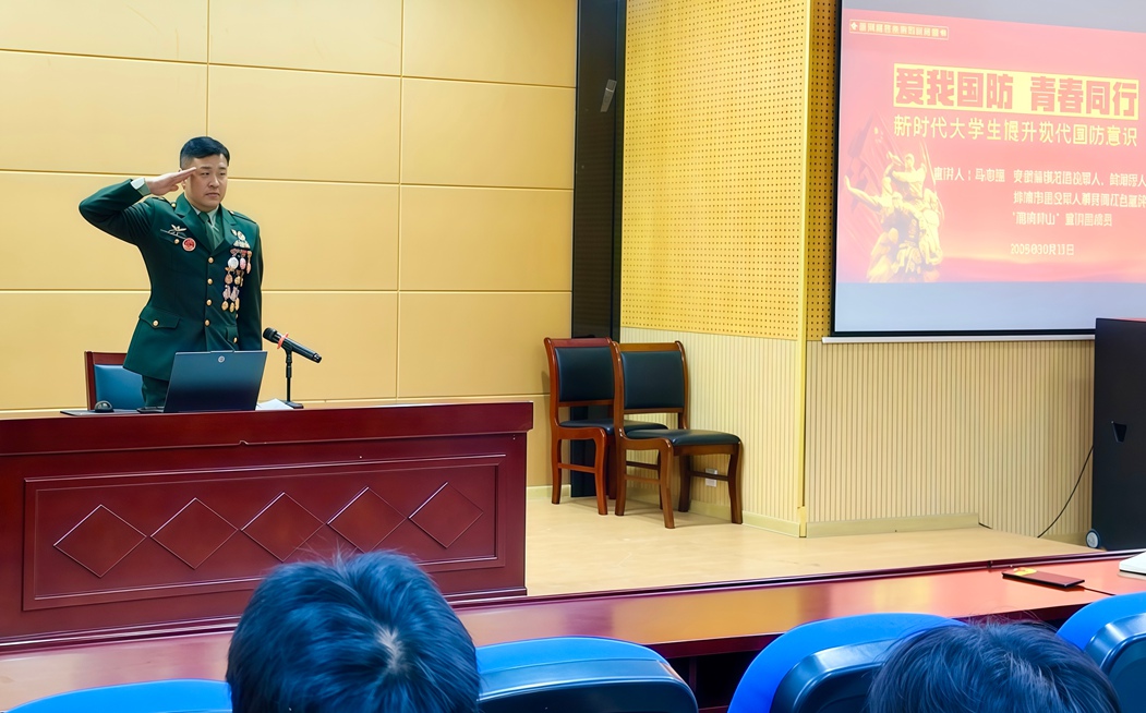 为纪念中国人民抗日战争胜利暨世界反法西斯战争胜利80周年,深入贯彻落实习近平总书记关于传承红色基因工作的重要指示精神,2025年10月15日下午,“安徽省模范退役军人”马志强走进蚌埠工商学院计算机与人工智能学院,开展以“爱我国防 青春同行”为主题的国防教育知识宣讲活动,100余名师生参加。