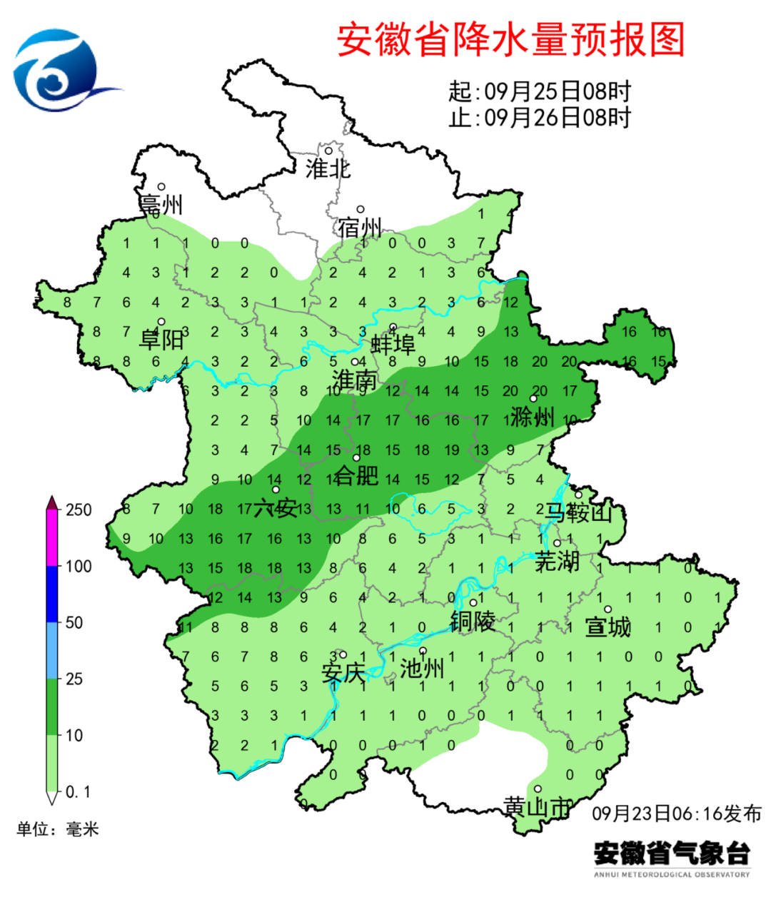 25日:全省阴天到多云,淮北地区南部和淮河以南大部分地区有小雨,其中江淮之间部分地区中雨。
