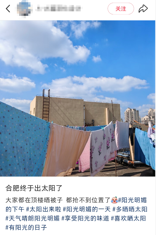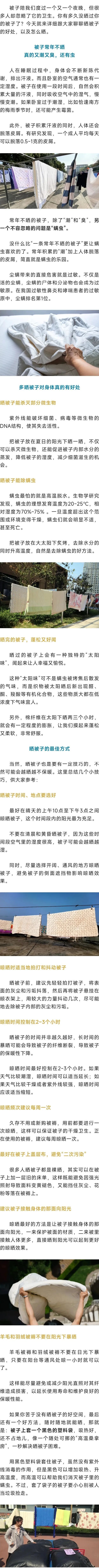 今天 阳光如约而至 积攒许久的衣被 是时候可以拿出来晾晒一番 今天没抢到位置? 别着急 据安徽气象最新消息 未来一周 我省以晴到多云天气为主 可是 你真的会晒被子么? 这些晒被子的小tips 快来马住吧 就在今天这个 阳光灿烂的日子 去“洗刷刷”吧 0