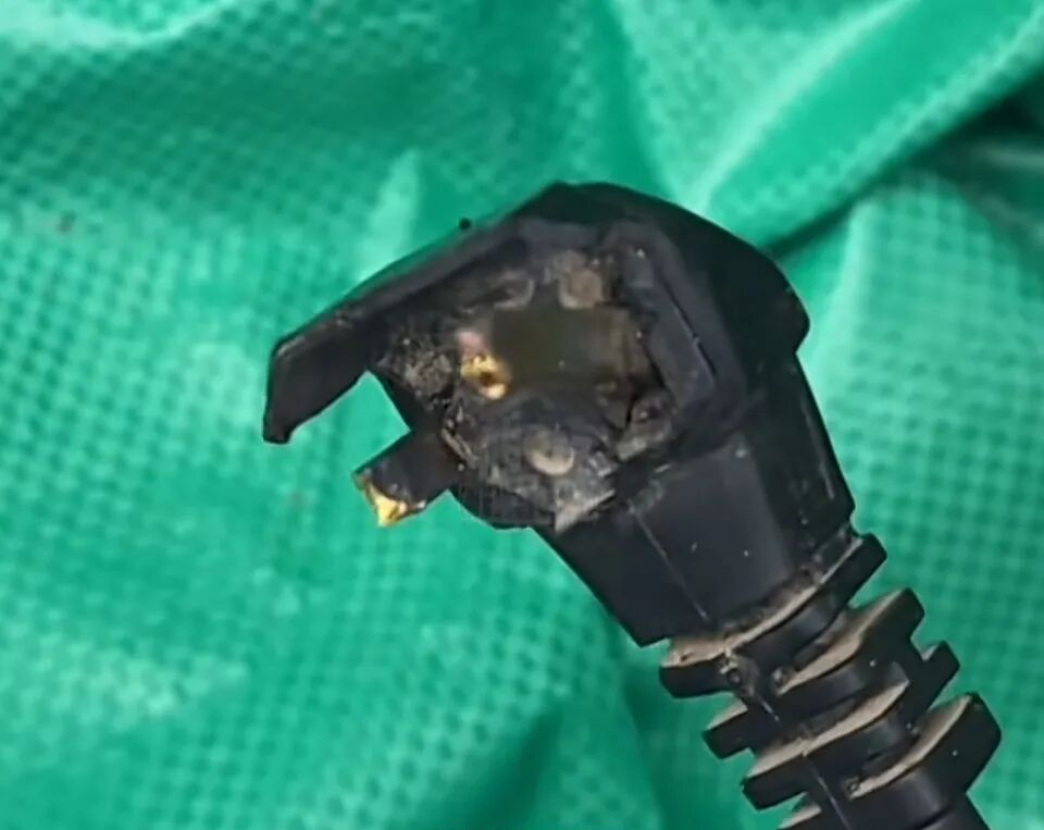 插头上面还有熔化的金子。图源:安徽商报视频号截图