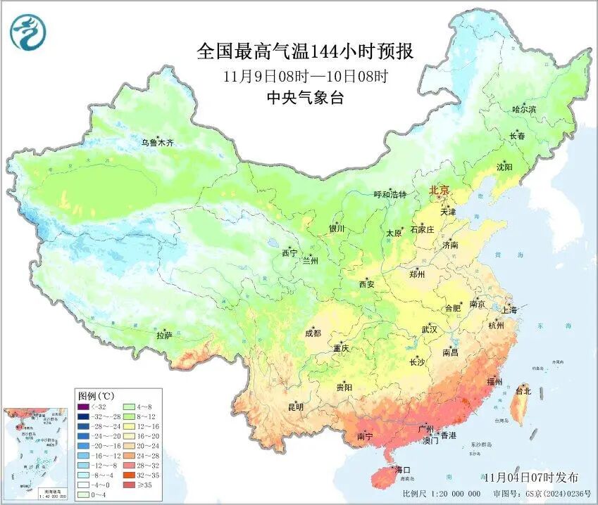 据中央气象台,5日至9日,一股较强冷空气将自西向东影响我国大部地区。