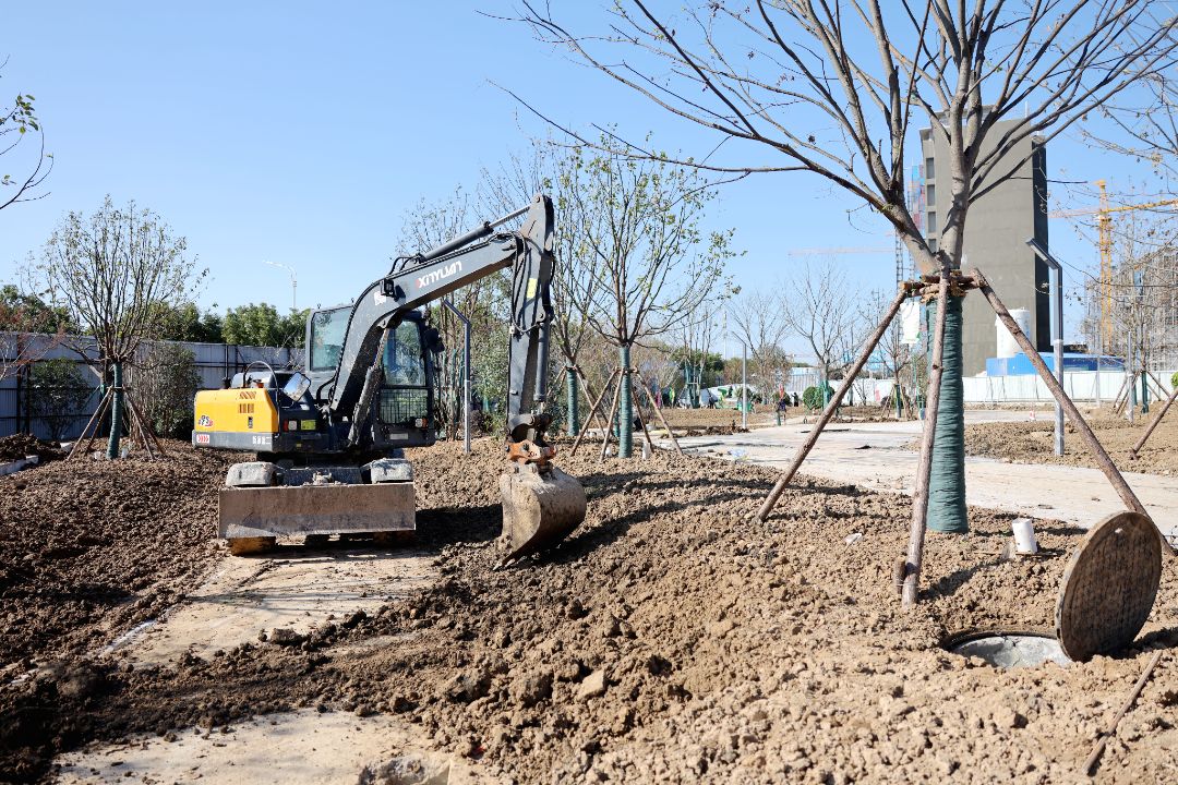 11月11日,记者在蚌埠自贸区体育公园项目B地块现场看到,园区道路硬化完成过半,绿化苗木种植已初具规模。同时,已完成景观石、戏水池等安置。据介绍,目前已完成B地块工程量的80%,施工正加大人力物力投入,进行年度目标冲刺。