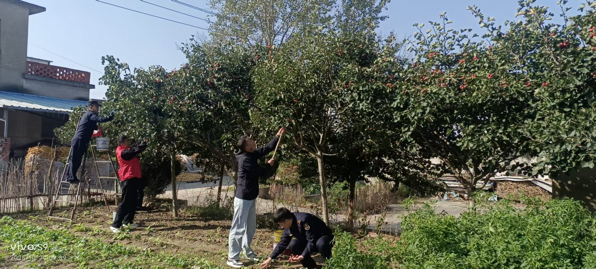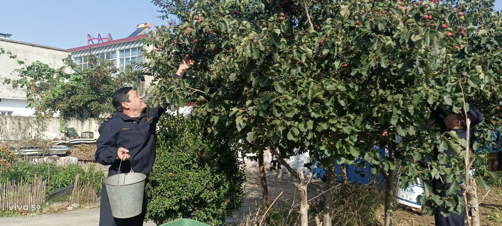 采摘当日,一支由住建局党员干部组成的助农队伍来到了赵以甫老人的山楂园。大家分工明确,有的踮脚登高,采摘树梢的果实;有的俯身捡拾,不让一颗遗落。田间地头,忙碌的身影与老人的期盼交织成一幅温馨的画面。