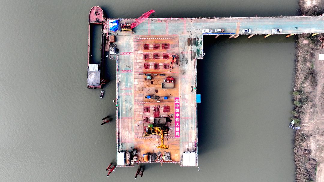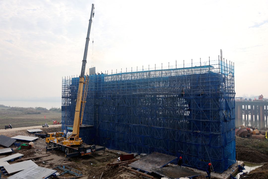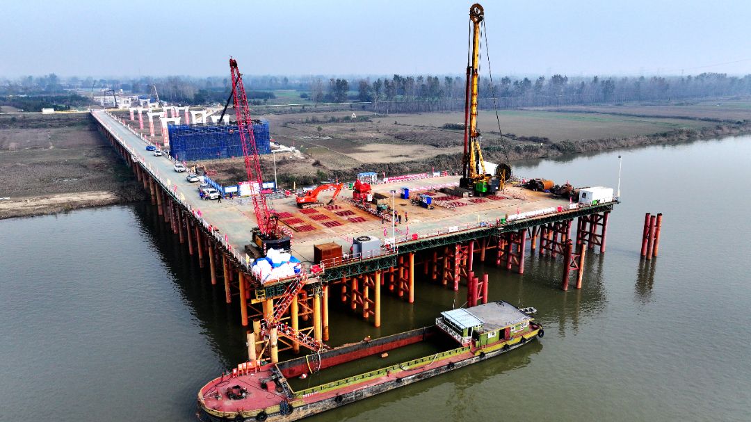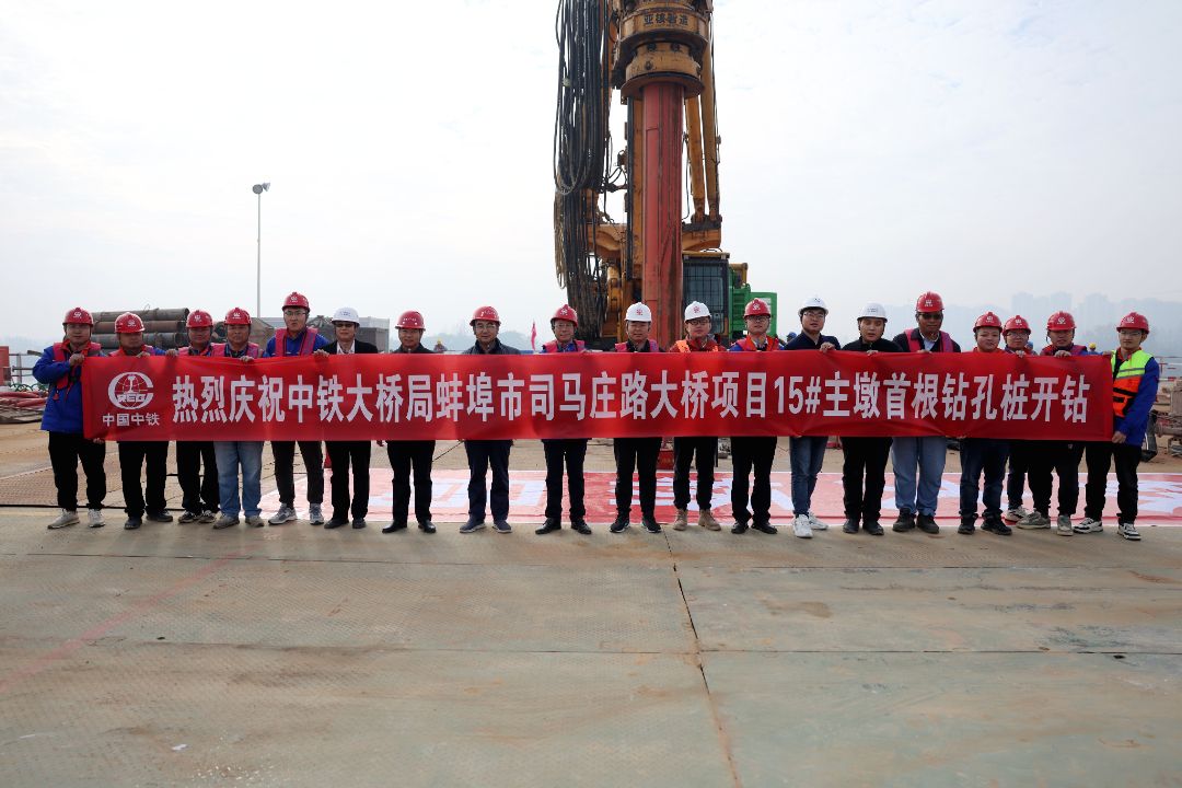 蚌埠发布客户端讯(记者 刘晨)11月13日,司马庄路淮河大桥及接线工程北岸现场,15号主墩开钻,施工人员操控机械进行作业。