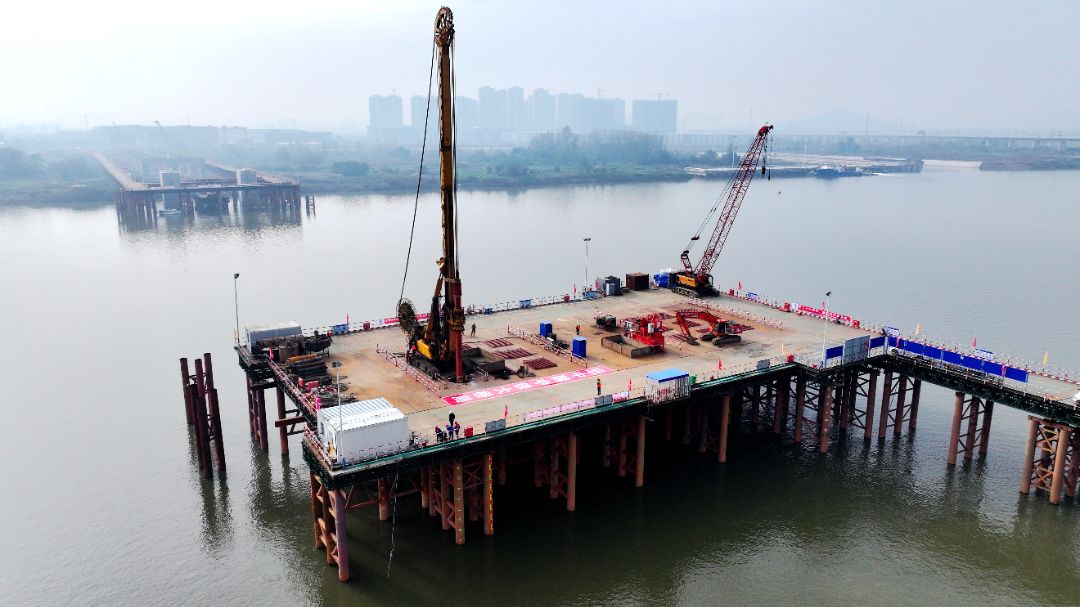 该工程起点为淮上大道交口,终点为治淮东路交口以北,全长约2710米,按城市主干路标准设计,双向六车道,由市重点工程建设管理中心组织建设,项目涵盖桥梁、道路、排水等多方面工程。据介绍,15号主墩开钻,标志着北岸主墩基础施工正式启动,共18根桩基,预计明年1月中旬完成,同步进入承台施工阶段。