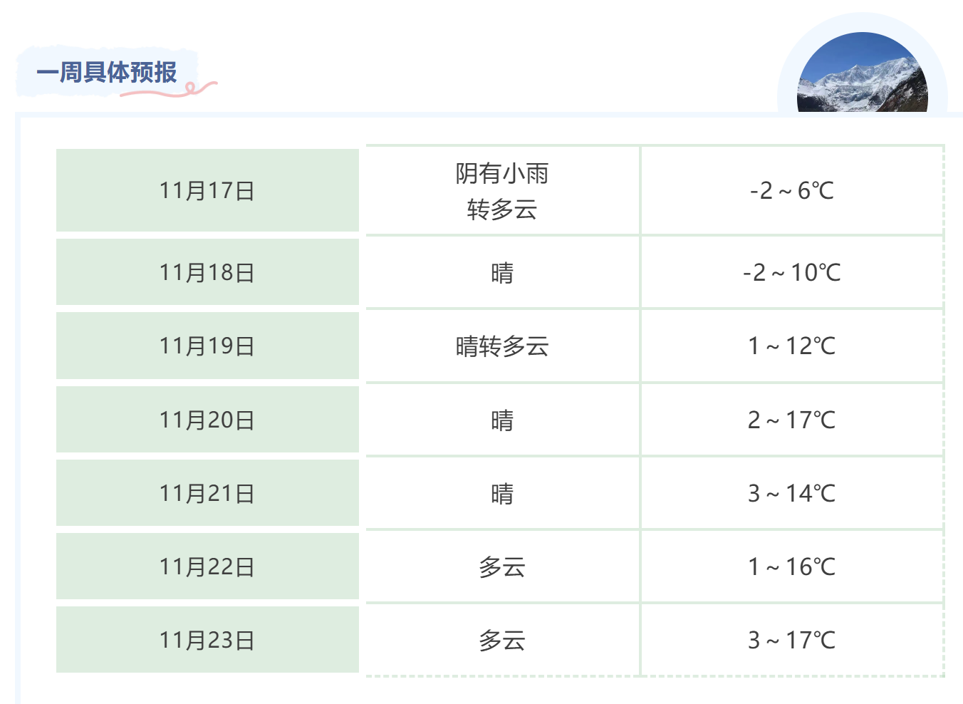 好消息是,随着冷空气势力减弱,降雨很快停止,后续一段时间暂无降水,更没有雪,天气逐步转晴。预计18日起,全市多云转晴,气温-2℃到10℃;19日晴到多云,气温1℃到12℃。19日起,全市将以晴好天气为主,气温开始缓慢回升,但早晚气温仍较低,防寒保暖不可松懈。
