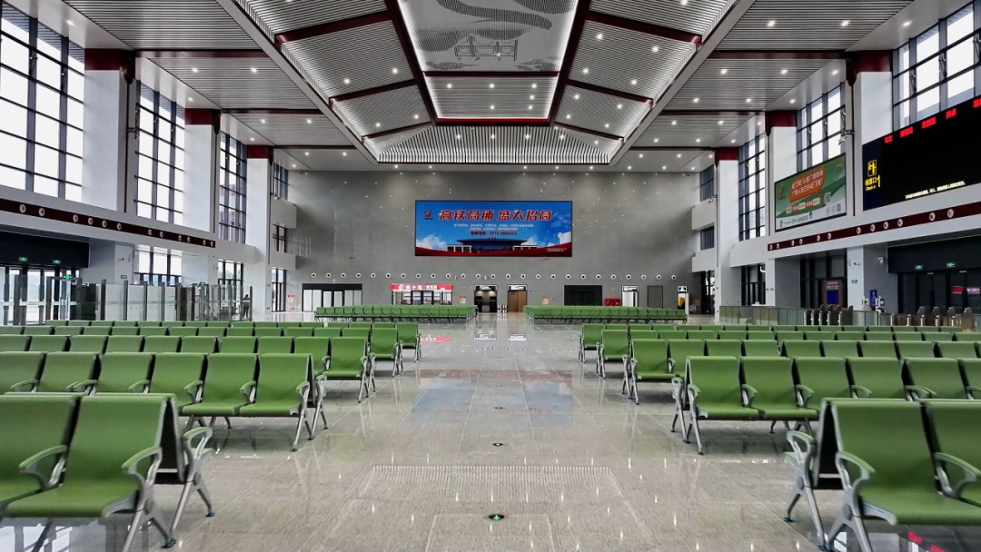 龙州站主立面以木格栅形式为主,还原当地传统民居多格栅虚实交叠的韵律美。室内装修设计强化空间的区域性、整体性,建筑外观沿用简洁线条,整体建筑与室内装修风格和谐统一。