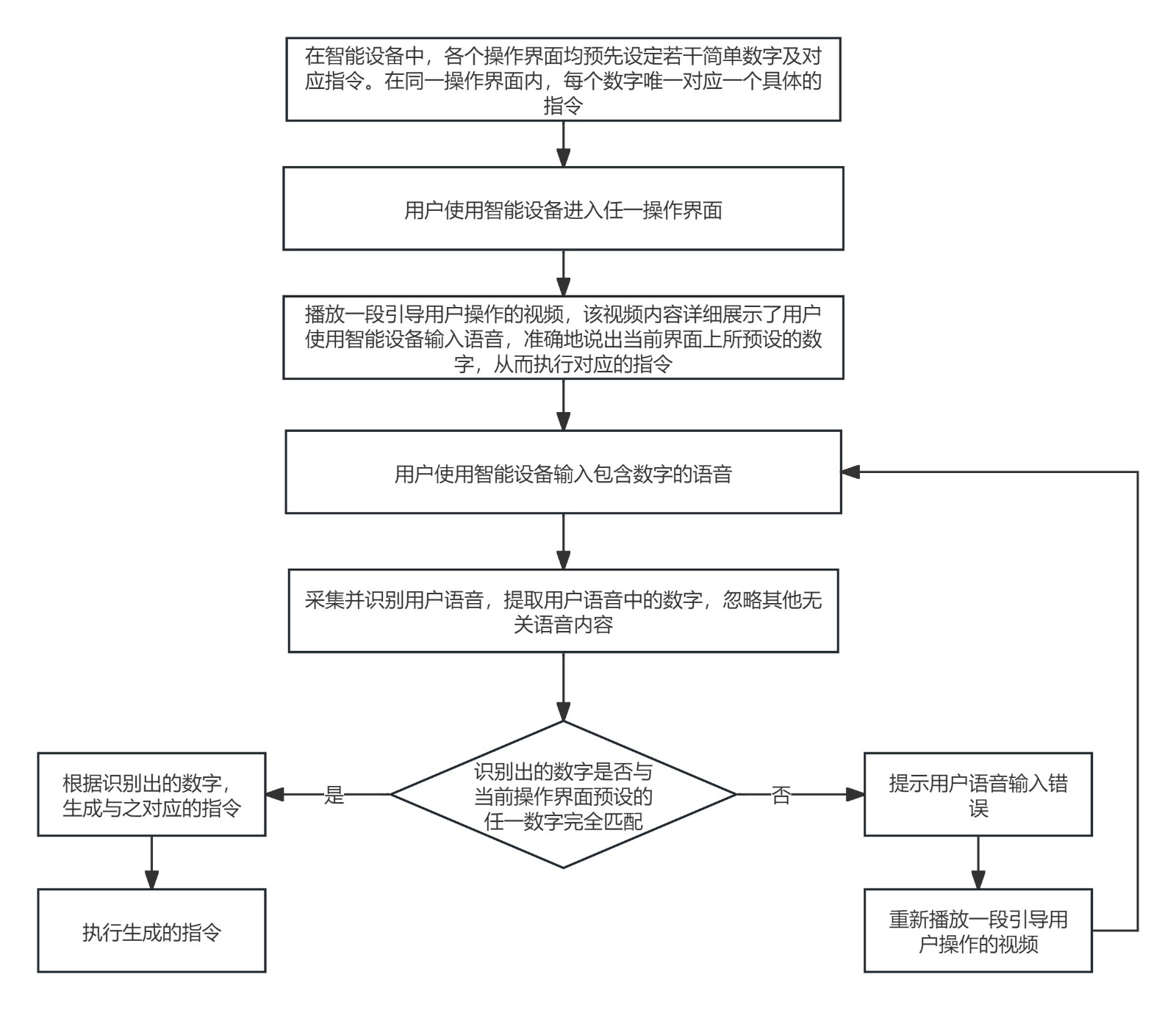 在这一世界性难题面前,中国创新者另辟蹊径,从交互设计上实现根本性突破。该技术采用“一键操作+各个操作界面预设数字及对应指令+视频语音引导”的创新模式,老年人仅需观看循环演示视频,说出对应数字,即可完成全流程操作,极大降低了使用门槛(如图)。