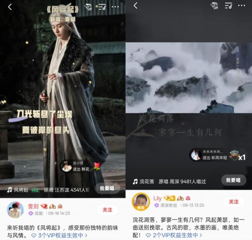 剧集的热播不仅点燃了荧幕内的江湖热血,也激发剧迷们用歌声延续感动,一场翻唱《赴山海》OST的热潮已然在全民K歌平台掀起。如K歌网友"壹刻"翻唱了《风将起》,在“VIP-人声增强”音效的加持下声音更具力量感,将群雄争霸的江湖豪情演绎得淋漓尽致。另一位K歌网友“Lily”则使用“VIP-周深音效"翻唱《浣花落》,开口仿佛周深附体,细腻还原了原曲清冷凄婉的意境。
