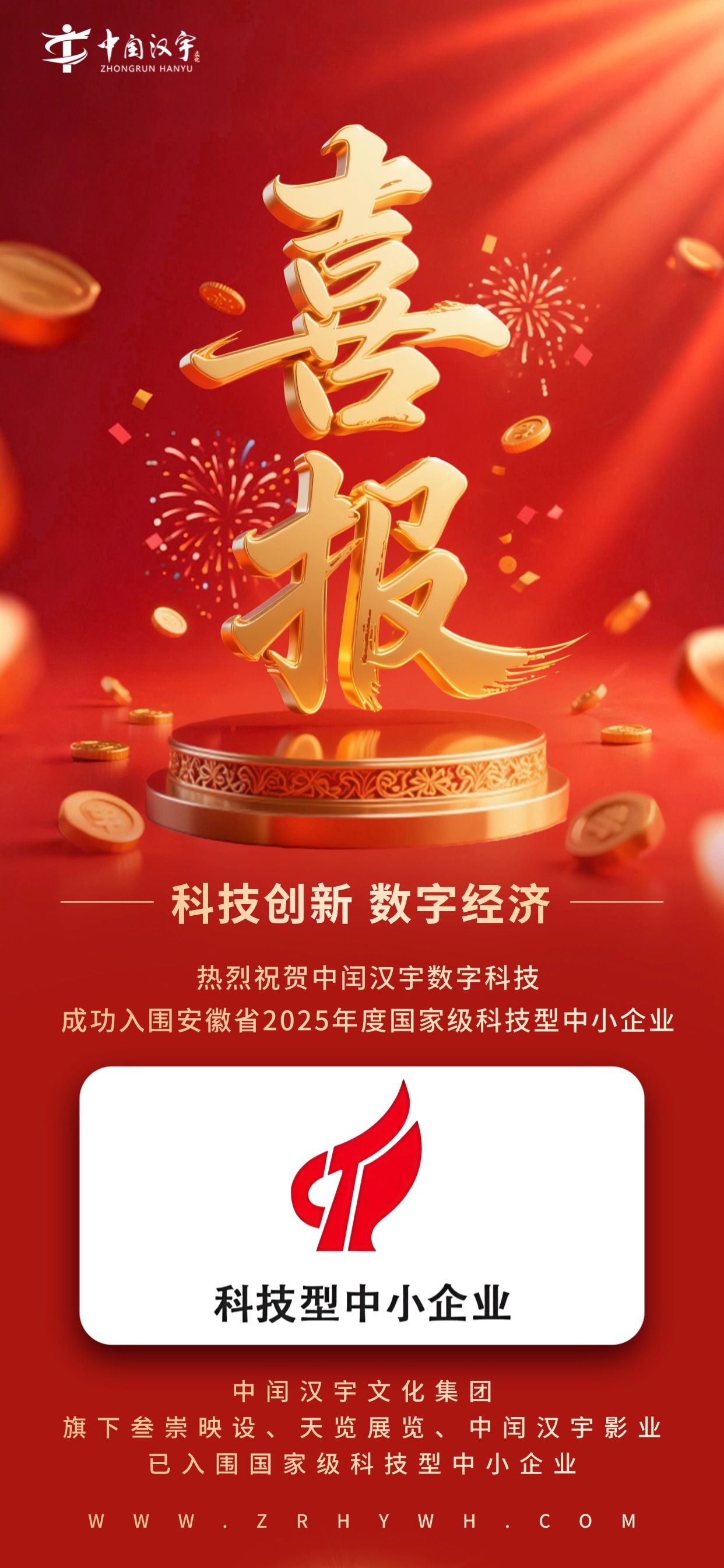喜报!中闰汉宇数字科技成功入围安徽省2025年度国家级科技型中小企业