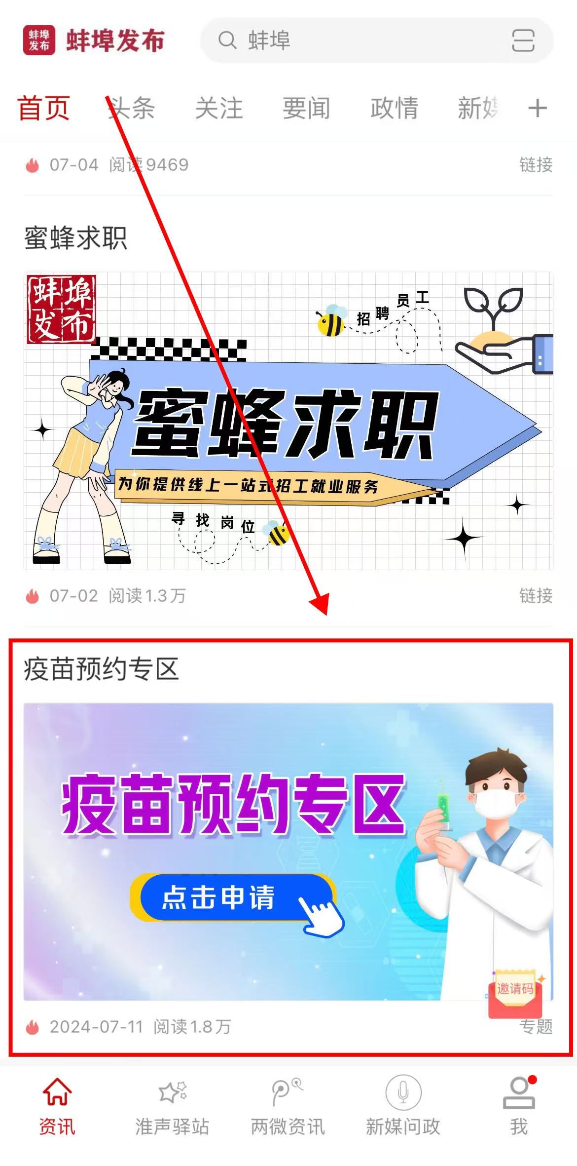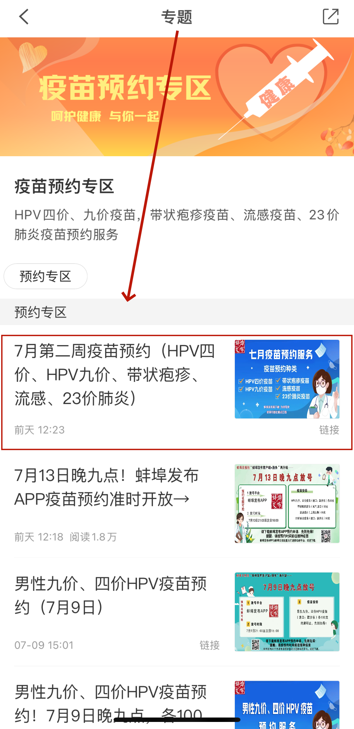 进入首页“预约”频道,在9月21日晚九点会出现疫苗预约的链接,点击进入预约登记。