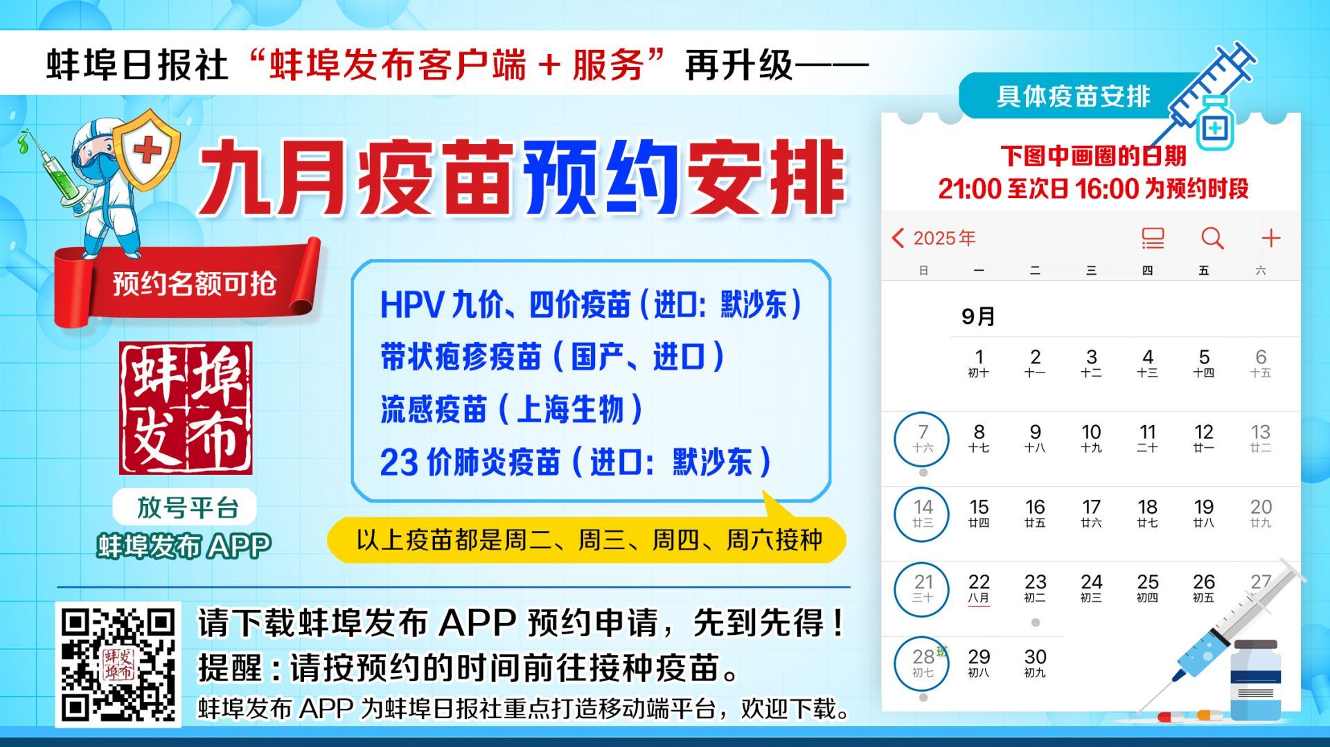 3、您可选择不同时段预约,预约成功后请携带个人身份证,凭预约记录前往蚌埠市第三人民医院(市中心医院)预防接种门诊接种;