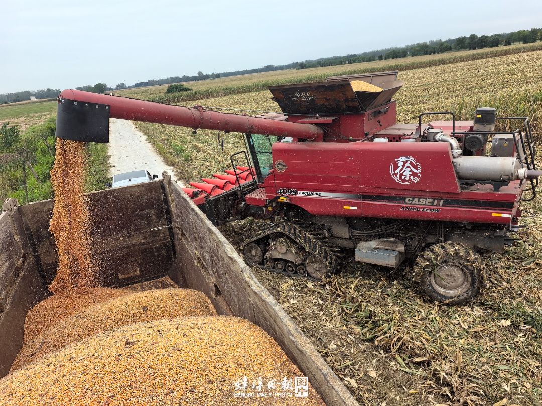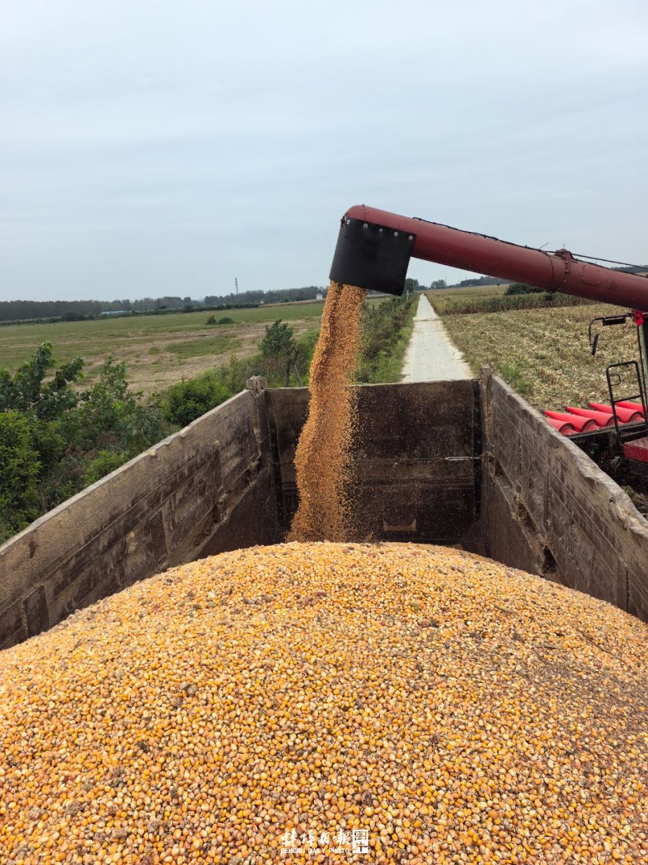 “这台‘铁牛’一天能收300亩左右,咱2000多亩玉米,趁这几天晴好天气抢收,心里才踏实!”尚跃抹了把汗,眼角的笑纹里盛满期待。他蹲在运输车旁,指尖划过饱满的玉米粒:“你看这颗粒,今年长势真不赖!”