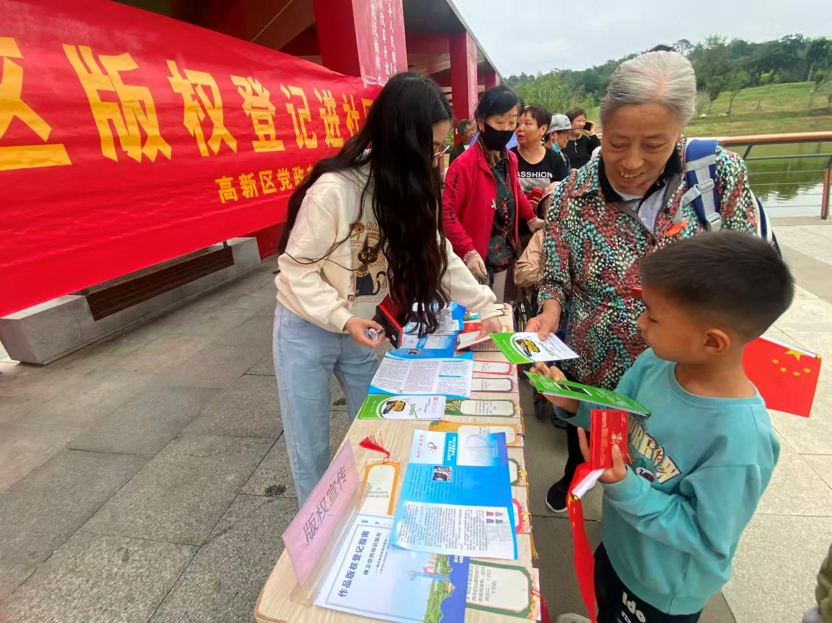 在国庆、中秋双节来临之际,为进一步加强知识产权宣传教育、提升社会公众版权意识,加强“扫黄打非”法律法规宣传普及,9月22日下午,高新区党政办在小黄山公园组织开展了以“保护版权、激励创新”为主题的“扫黄打非”暨版权保护现场宣传活动。本次活动作为高新区“庆国庆·迎中秋”系列活动的组成部分,依托公园人流集聚优势,设置版权宣传专题打卡点,吸引众多市民参与互动。