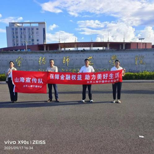 9月15日—9月19日期间,太平人寿宁德中支员工着正装,分别前往宁德师范学院、马山村、立业社区、大润发物业公司、福鼎点头、福安人民广场等基层一线,开展多场形式多样、内容丰富的金融知识宣传活动,以“零距离”服务传递保险温度,以“心贴心”行动守护群众。
