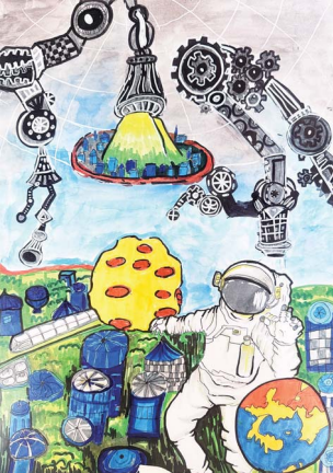 绘画作品《机械臂下的宇宙新域》