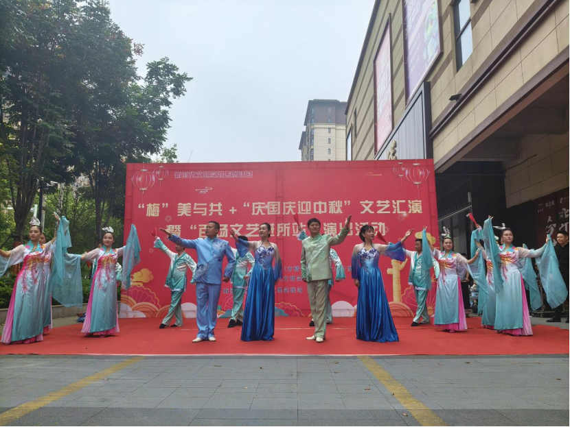 中秋月圆,国庆同欢。为进一步弘扬中华民族传统文化,丰富居民精神文化生活,营造喜庆祥和的节日氛围,9月23日,秦集镇梅园社区在润志生活广场隆重举办“梅”美与共+“庆国庆迎中秋”文艺汇演暨“百场文艺进所站”演出活动。本次活动融合文艺表演、便民服务、非遗体验与政策宣传于一体,吸引众多辖区居民的参与。