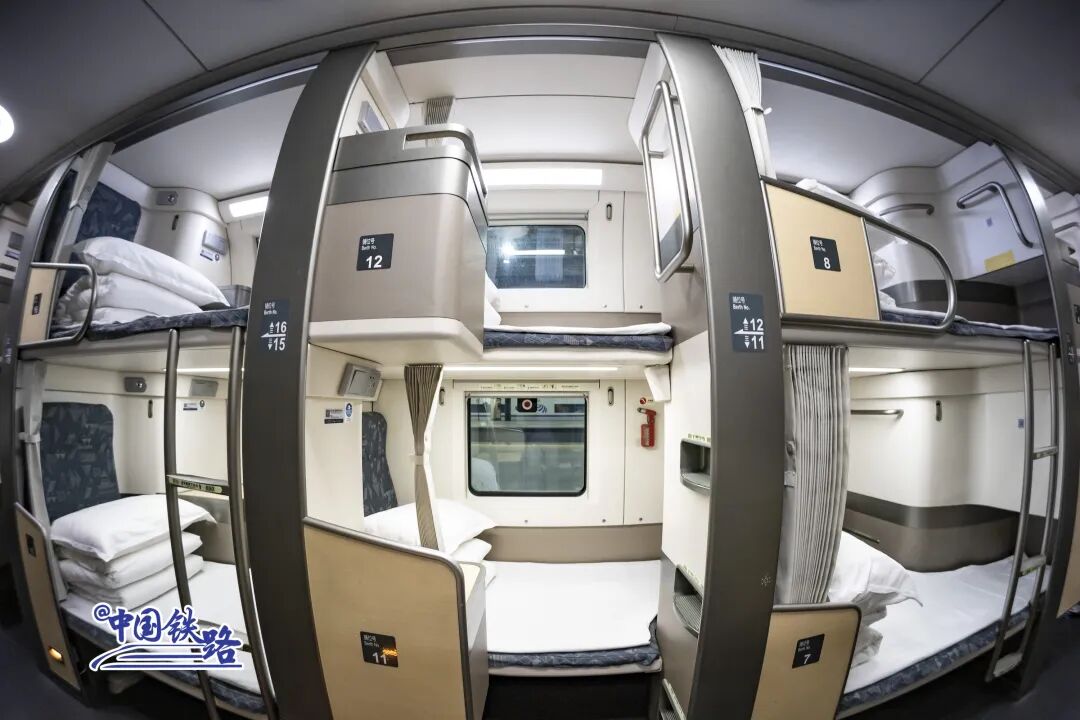 该车除了9号车厢设有餐吧,均为软卧车,总定员880人,比普通动卧列车席位增加超过三分之一。