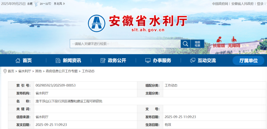 据安徽省水利厅消息