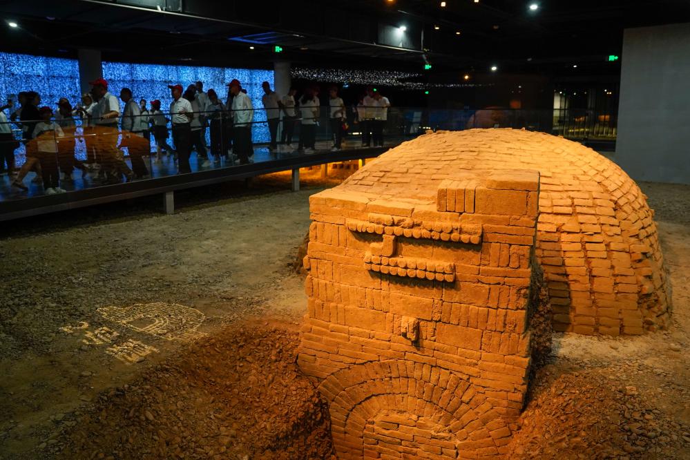 墓门照墙上青龙、白虎、朱雀、玄武等中国传统神兽纹样至今清晰可见,上海游客陈美琳一边专注地欣赏,一边感慨道:“仿佛能触摸到历史脉搏,感受遥远时代的生活气息。”