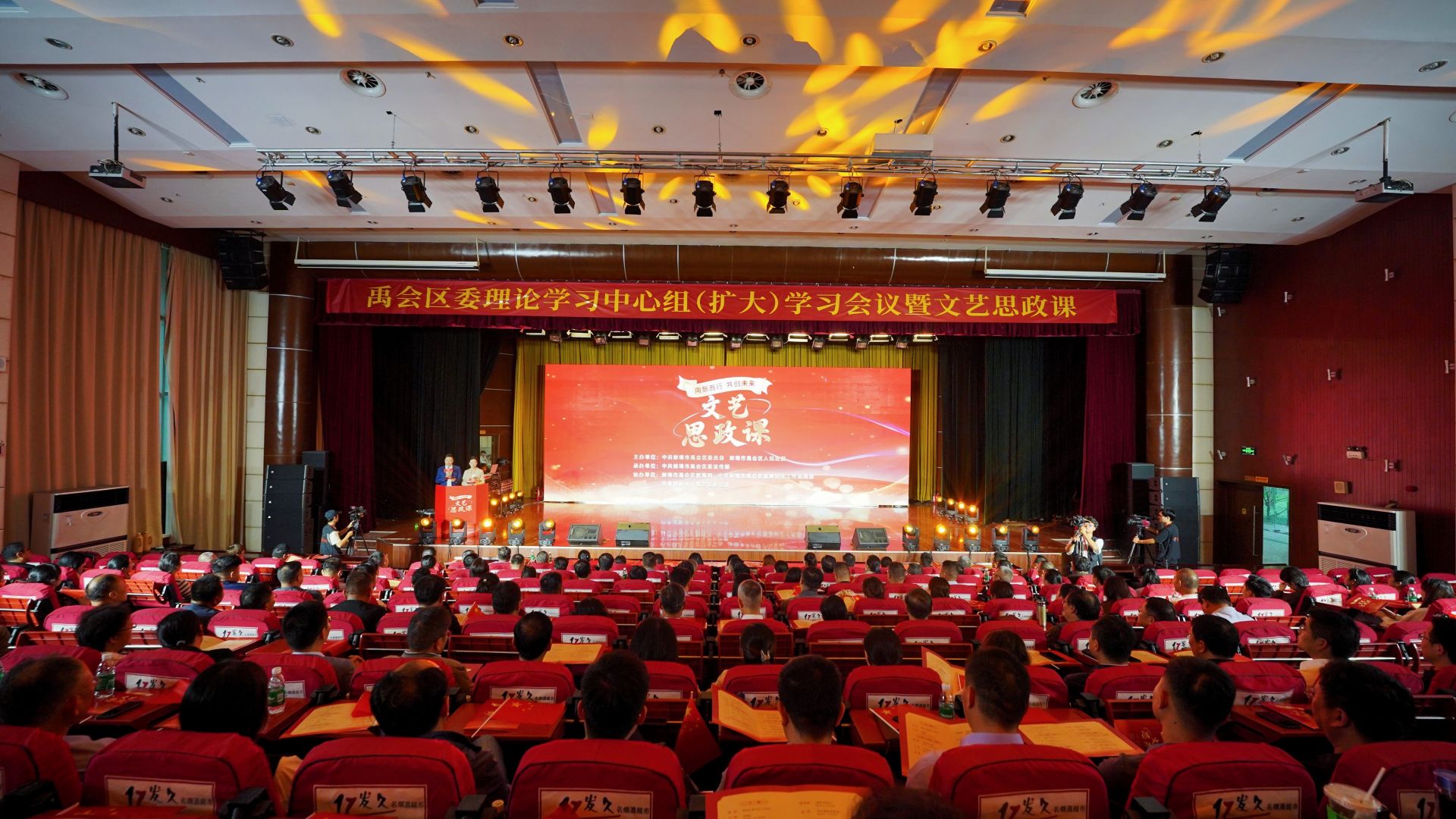 在中华人民共和国成立76周年之际,9月25日下午,“向新而行,共创未来”禹会区委理论学习中心组(扩大)学习会议暨文艺思政课举行。禹会区委书记王启卫致辞。市委宣传部、市委讲师团相关负责人,区委理论学习中心组成员及其他县级领导干部,各乡镇街道、村社区和区直各部门负责人,辖区文明单位、学校、企业代表等参加。