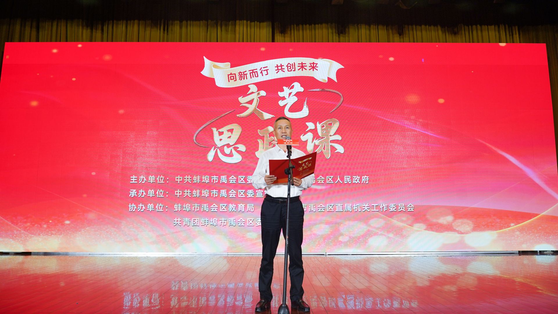 王启卫在致辞中表示,办好思政课是习近平总书记非常关心的一件事。近年来,禹会区积极探索文化作品与思政教育的融合途径,不断深化文艺思政课品牌建设,把理论学习和艺术审美叠加、把思政教育和视听作品结合,让文艺的力量推动党的创新理论传播、以沉浸式体验感受新时代发展成就、用身边故事展现基层治理新风貌。