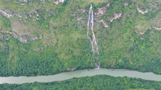 花江峡谷大桥附近的瀑布。新华网 周远钢 摄