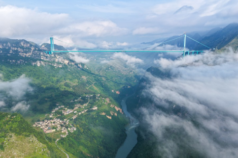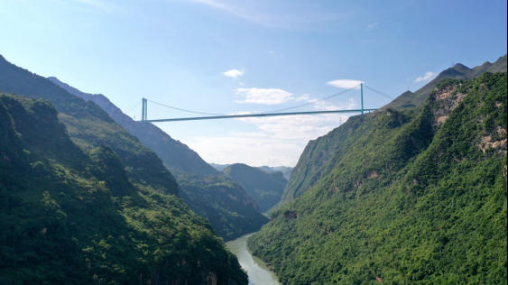 航拍花江峡谷大桥。新华网发(尹刚 摄)
