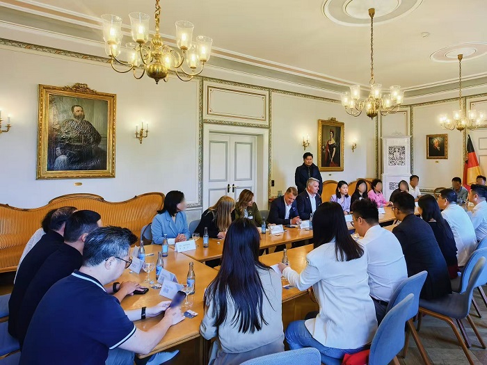 图为:中方企业家代表与德国政府官员座谈沟通现场