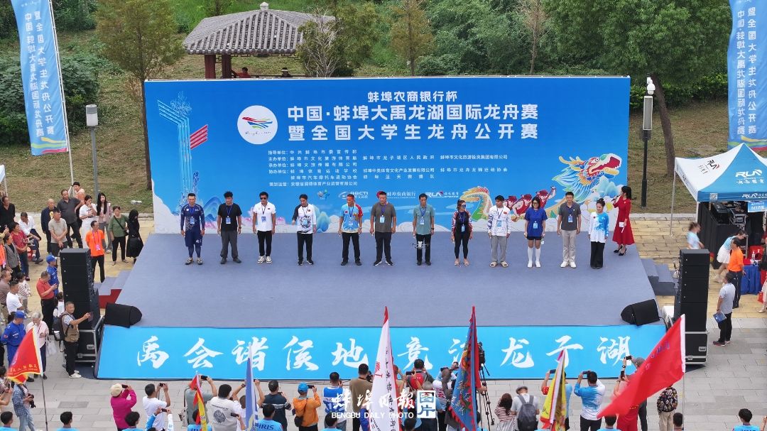 蚌埠发布客户端讯(融媒体记者 王立春 文/图) 鼓声雷动,浪花飞溅!9月27日下午,作为蚌埠市金秋文旅嘉年华的重磅活动之一,“禹会诸侯地·竞渡龙子湖”2025中国•蚌埠大禹龙湖国际龙舟赛在龙子湖水上运动中心激情挥桨。包括2支国际队伍在内的12支国内外顶尖龙舟队齐聚淮畔明珠,在500米直道上展开了一场速度与激情的巅峰对决。