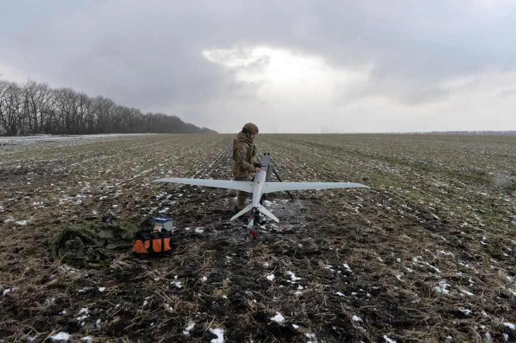 2月5日,在波克罗夫斯克前线作战的乌克兰第25独立空降旅士兵,将安装调试好的无人机搬运到发射装置上。新华社发(彼得·德鲁克摄)