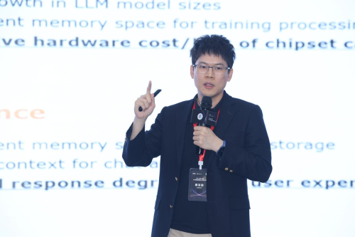 台湾群联电子资深经理蔡宗勋介绍,群联aiDAPTIV+解决方案重塑 AI(LLM)部署战略,以软件赋能 PC 硬件,让同质硬件呈现不同使用境界,打造新计算机体验,助力产业加速 AI 应用落地与智能化转型。