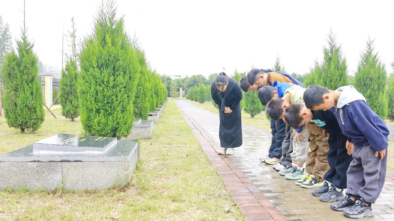 活动中,小志愿者们怀着无比崇敬的心情祭奠了长眠于此的十二个无名小红军墓,举行了一场庄严肃穆、意义深刻的祭奠仪式。