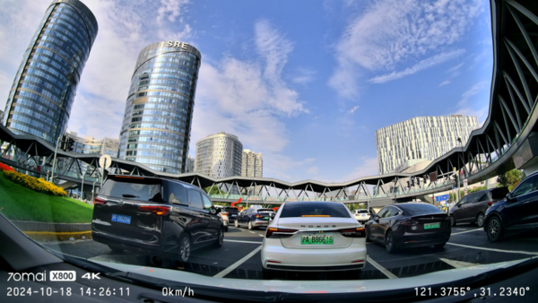 它支持4K超清录制,使用索尼IMX678传感器,画面细节非常丰富。146度大广角能覆盖多车道,录制范围更广。它的强项在于夜视功能,采用超感光夜视算法+F1.7光圈,晚上跟开了夜视仪似的!隧道强光不瞎,雨雾天也能看清车牌。即使在光线很弱的环境下也能拍清车牌。搭配他们自研的MCSS3.0算法,就算是晚上没有光的条件下拍出来的画面也都是彩色的,色彩好看,饱和度和清晰度也都很高。