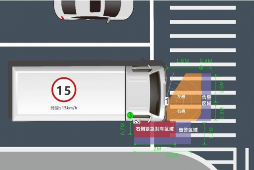 该系统核心搭载77G毫米波雷达技术,精准探测车辆右前侧及前方盲区,0.4秒极速响应,主动刹停避免碰撞。面对复杂道路环境,该系统能实现全天候抗干扰,雨天、雾天、强光、灰尘环境下稳定运行,雷达表面覆盖少量杂物也不影响探测。同时,这套智能防护系统构建起三重智能防护。在事前预警阶段,当行人在盲区告警位置时,系统语音提醒装置向驾驶员和行人分别发出告警;当行人进入紧急刹车区域,系统即刻启动事中干预机制,主动刹车降低车速,最大程度减少碰撞风险;事故发生后,车载黑匣子发挥事后追溯作用,详细记录行驶数据,能够精准还原车辆行驶状态,为后续事故分析与责任认定提供可靠依据。