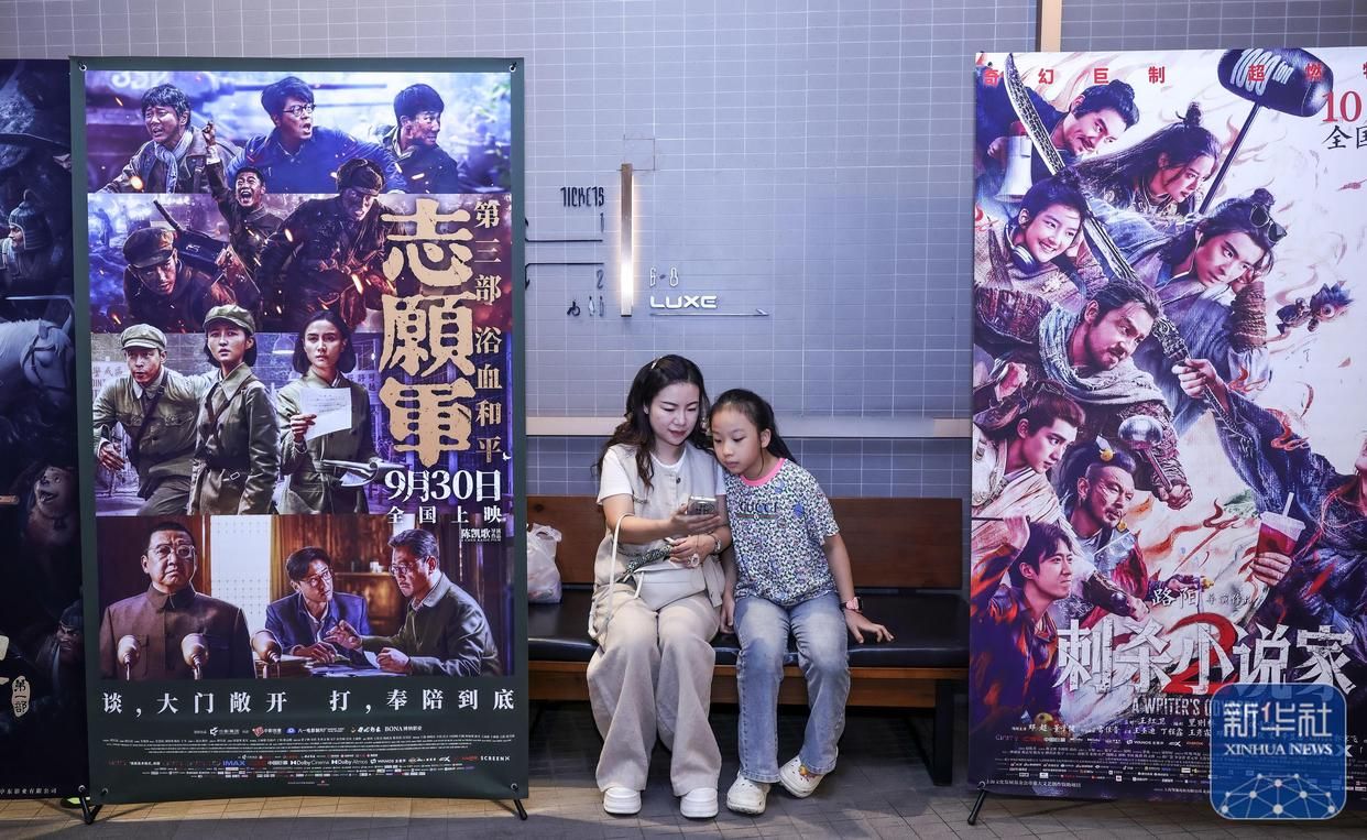 ↑ 10月8日,在福建省厦门市思明区一家影城,观影市民从电影海报前走过。新华社发(曾德猛摄)