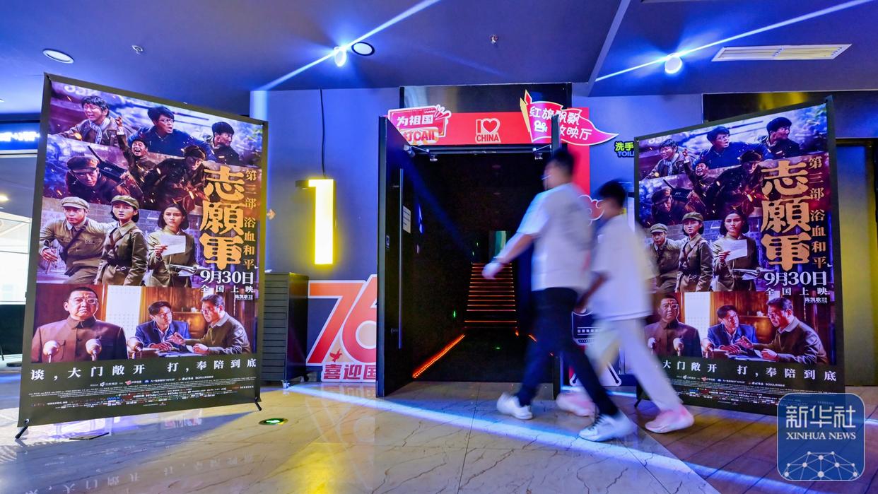 ↑ 10月4日,在天津市滨海新区一家影城,观众入场观看电影《志愿军:浴血和平》。新华社发(杜鹏辉摄)