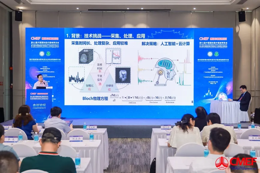在全场嘉宾的共同见证下,东软医疗NeuMR Wasa全域分子研究型磁共振正式发布。随后,厦门大学屈小波教授以《磁共振波谱智能定量与胶质瘤应用》为题,从学术视角解析了新品核心技术的科研价值;东软医疗磁共振产品事业部3.0T项目经理顾青平则围绕“国产高端3T磁共振创新与实践”,阐述技术如何融入日常诊疗。两者的解读充分展现国产高端设备从需求提出、生态合作到技术验证的完整闭环,体现出国产品牌在创新转化方面的独特优势。