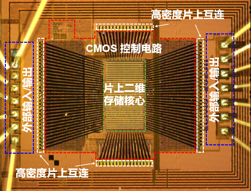 二维-硅基混合架构闪存芯片光学显微镜照片