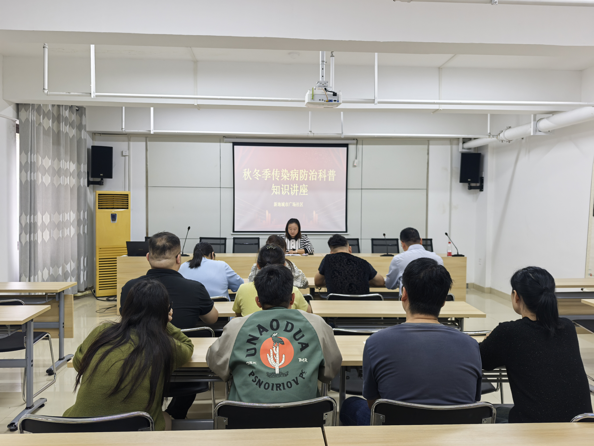 为增强居民秋冬季传染病防控意识,提升自我防护能力,新地城市广场社区特邀社区卫生服务中心专业医师,面向辖区居民举办秋冬季传染病防治专题健康讲座。