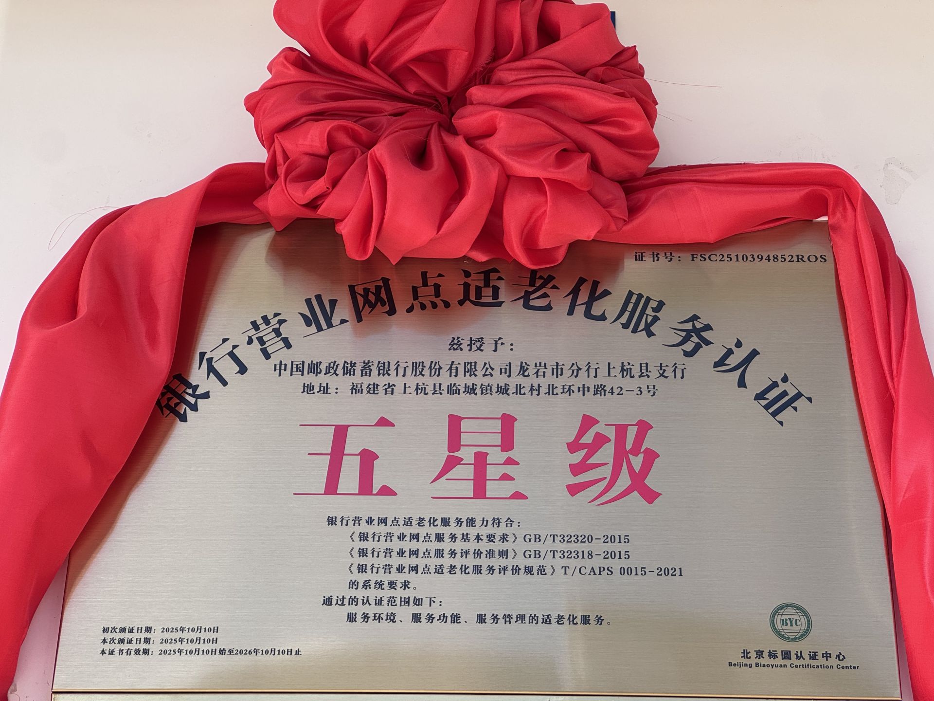 在中国人民银行龙岩市分行上杭营业管理部的悉心指导和支持下,邮储银行上杭县支行从服务环境、服务功能、服务管理三大维度出发,积极推进适老化设施改造、不断优化适老服务,经北京标圆中心认证,该行最终达到适老化服务最高星级标准,成为龙岩市首家获此认证的金融机构。