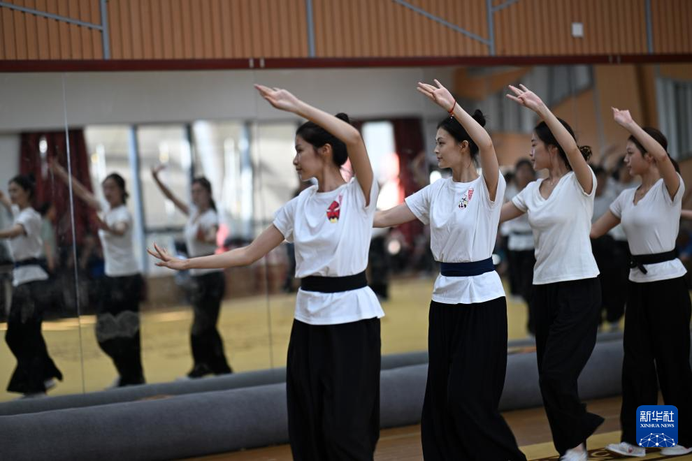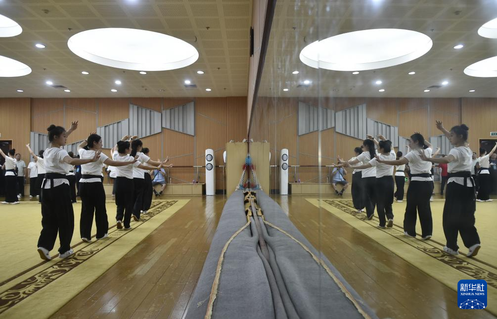 10月12日,浙江婺剧艺术研究院的演员在排练厅内练习基本功。新华社发(王颂摄)