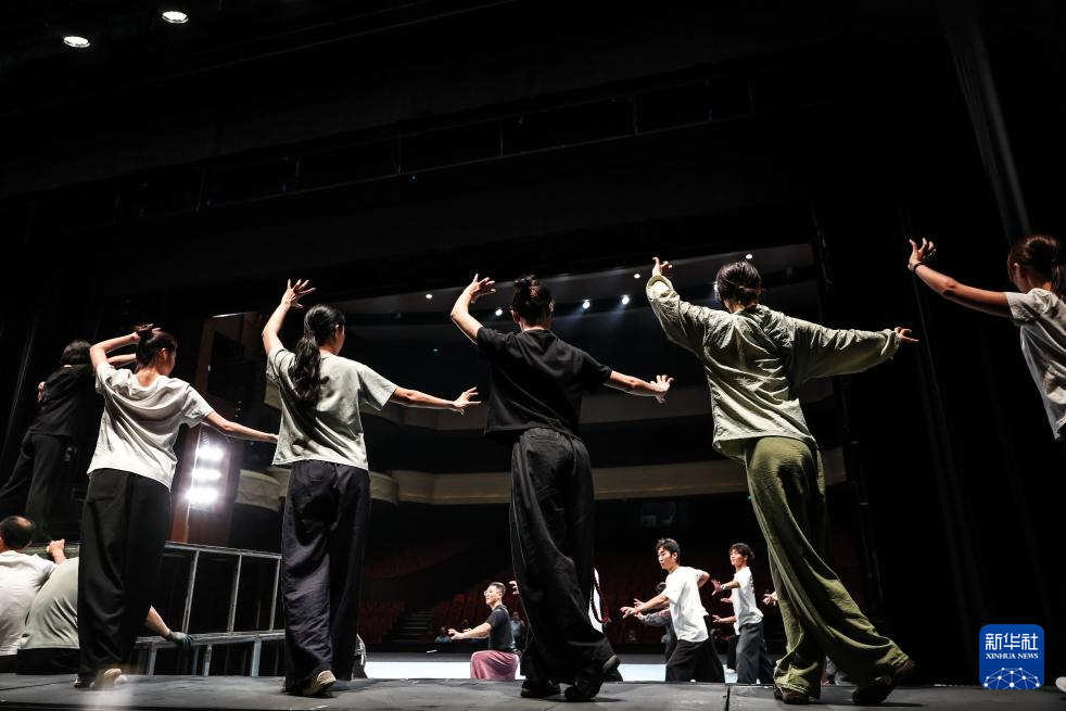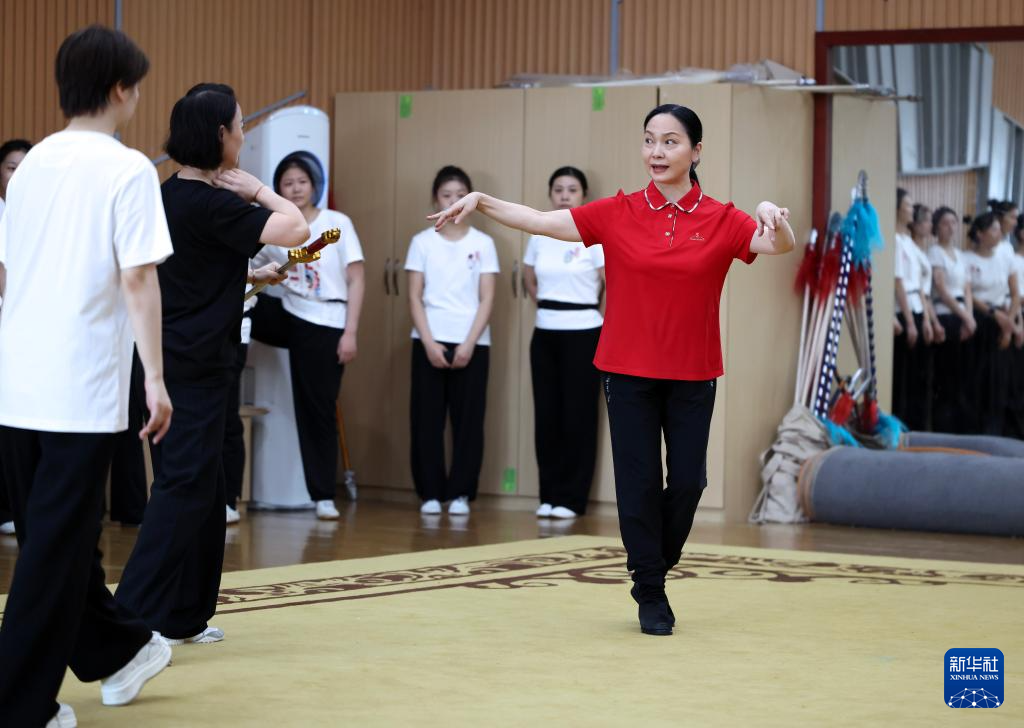 10月12日,二度“梅花奖”获得者、全国三八红旗手陈美兰(右一)在指导演员排练剧目。新华社发(兰红光摄)