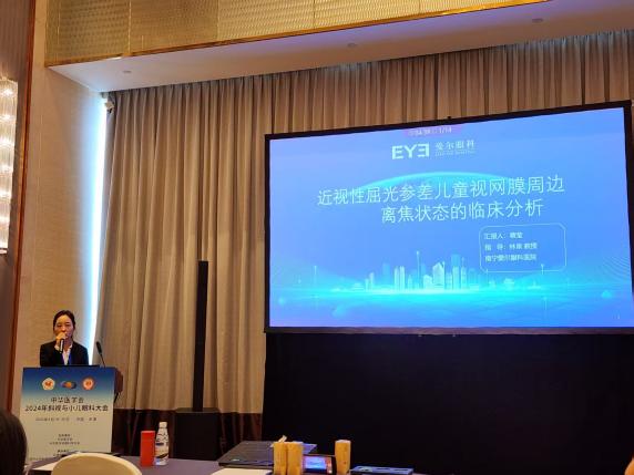 林泉教授指导蔡莹医生在中华医学会2024年斜视与小儿眼科大会上所作的报告《近视性屈光参差儿童视网膜周边离焦状态的临床分析》。通过揭示屈光参差儿童独特的周边离焦状态,为推动个性化近视防控方案的制定提供了关键证据。