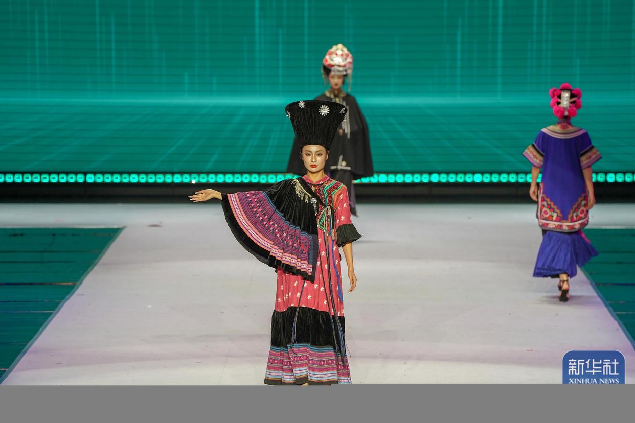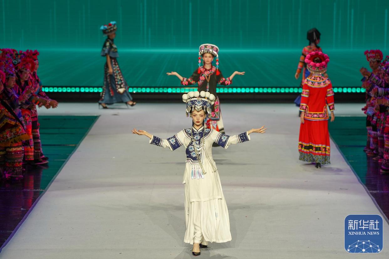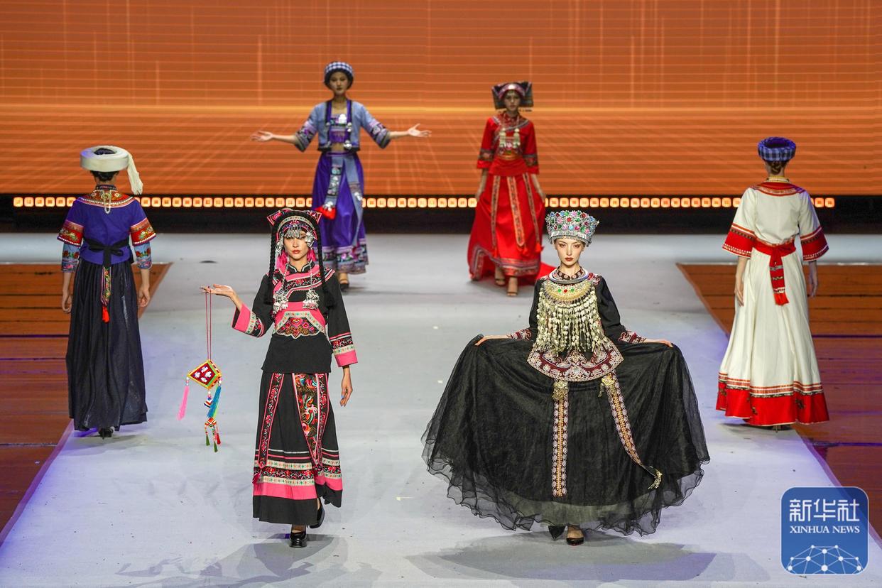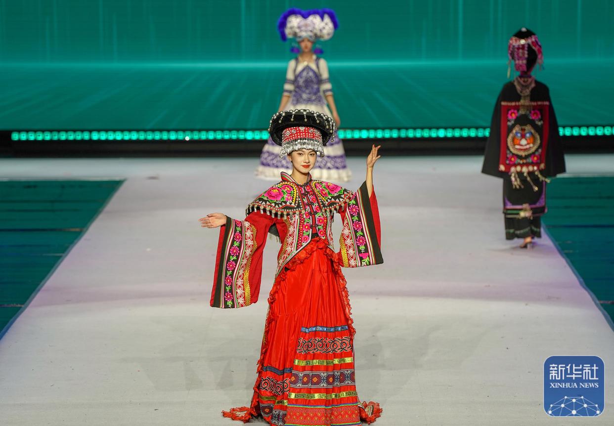 10月13日晚,2025丝路云裳·七彩云南民族赛装文化节在云南省楚雄彝族自治州楚雄大剧院开幕,第三届楚雄时装周·中国国际时装周同时启幕。启幕仪式上,手工刺绣匠人、设计师与模特同台,演绎融合非遗服饰元素的时尚作品,生动展现了古老非遗与现代时尚的融合与对话。