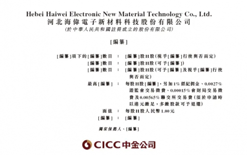 根据港交所最新披露,河北海伟电子新材料科技股份有限公司(简称:海伟电子)已于近期更新并重新递交主板上市申请,中金公司继续担任独家保荐人。该公司曾于今年2月首次提交上市申请,此次更新材料是推进上市进程的常规步骤。