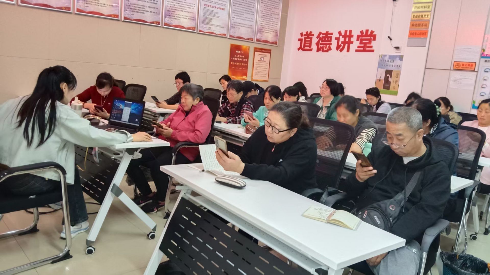第三天的“直播实操”环节,活动室变身“临时直播间”,学员们轮流坐在镜头前,拿着自家种的蔬菜、手工做的围巾当“商品”。宝妈陈女士第一次面对镜头时声音发颤,在老师“先打招呼、再介绍特点”的提示下,渐渐放开了手脚。台下学员举着手机当“观众”,现场氛围热烈又真实。