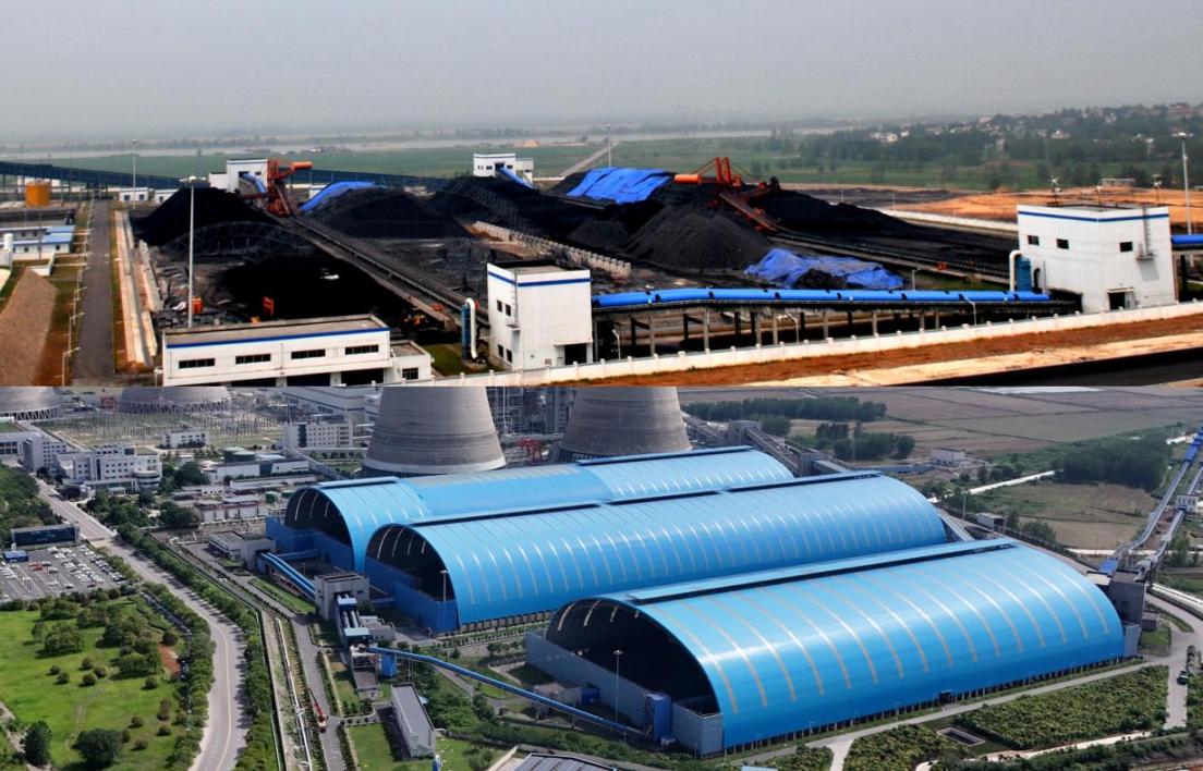 图为国能蚌埠电厂原露天煤场和现干煤棚对比图