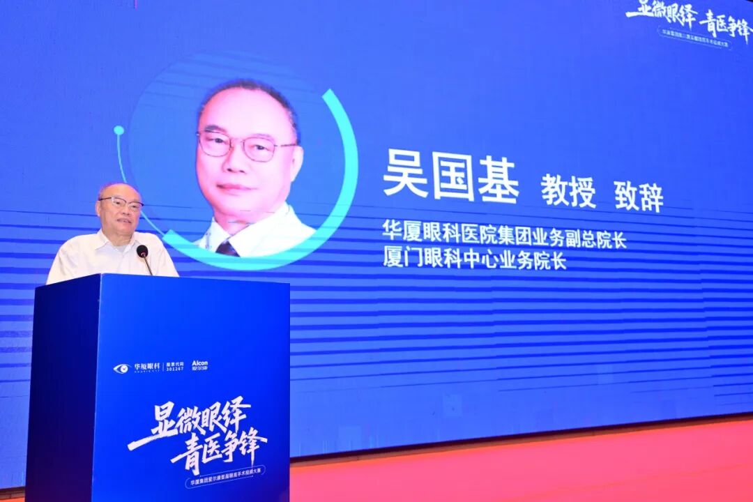 大赛主席、华厦眼科医院集团业务副总院长、厦门大学附属厦门眼科中心业务院长吴国基教授指出,眼底手术是眼科领域中极具挑战性的方向,它不仅考验医生的全局视野,更考验医生在毫厘之间的精准定力。比赛意义不在于胜负,而在于凝聚共识、激发思考、推动进步。希望大家带着学习的心态去看每一台手术——看的是技术,品的是思路,学的是经验。希望这次大赛能成为每一位参赛者和观摩者精进技艺、启迪思维的新起点。