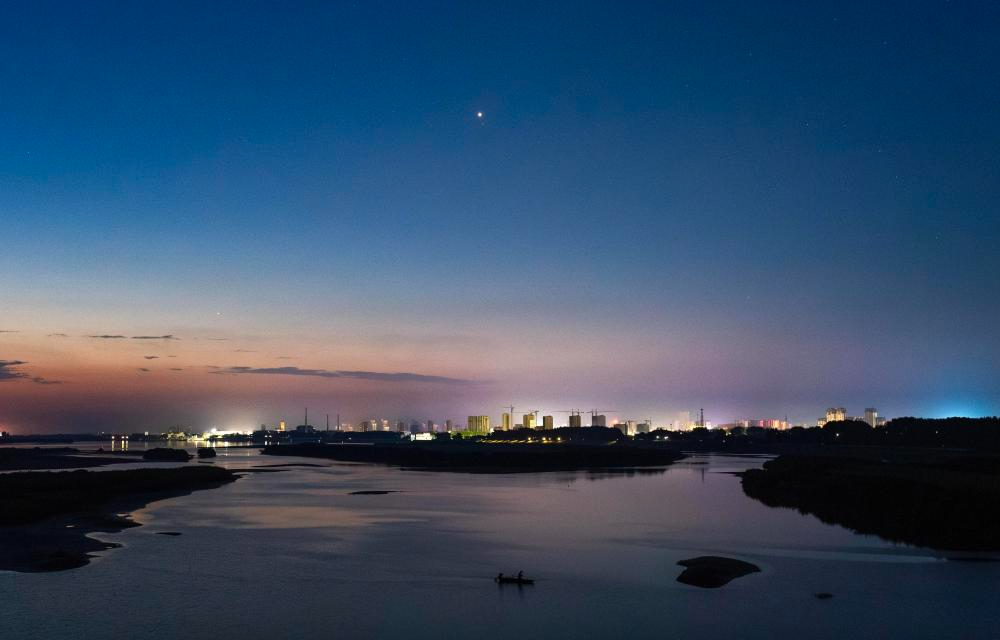 2025年7月22日,在黑龙江佳木斯拍摄的启明星伴月。(陈志国 摄)